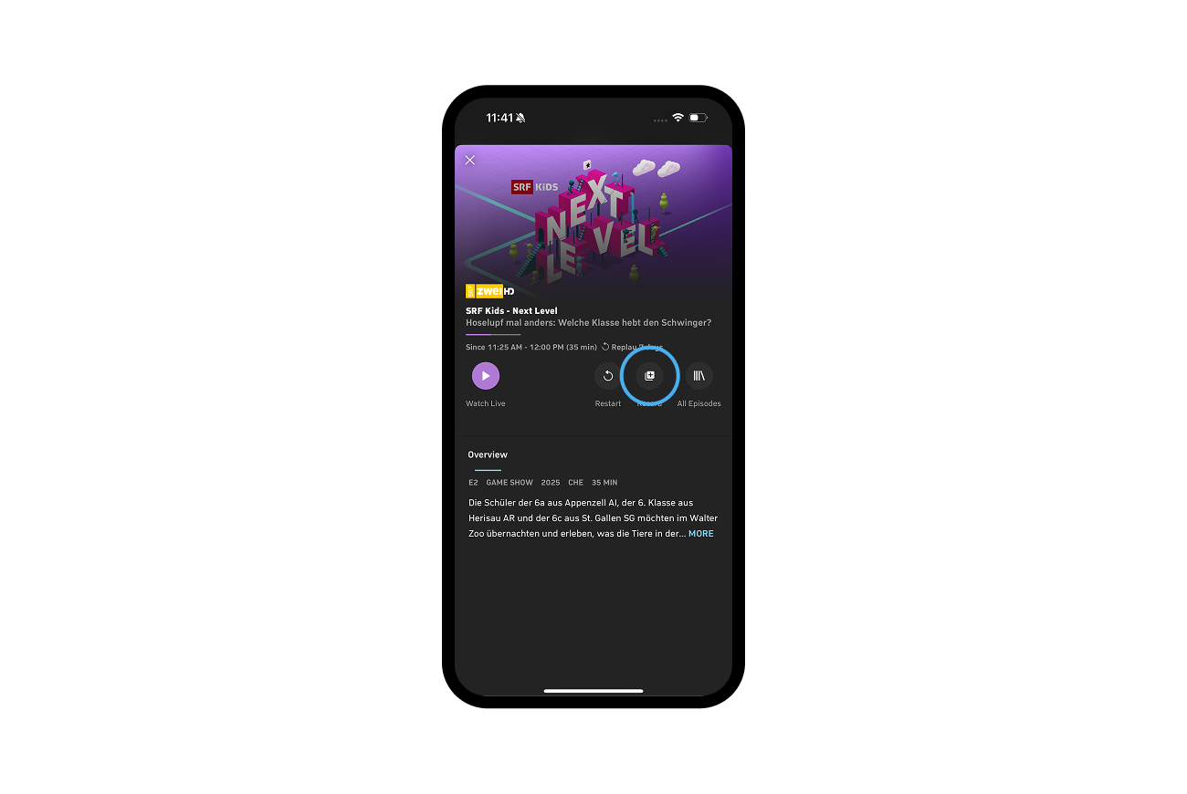 - Select a show: You can choose a live show in the player, in the highlights, or in the program guide.